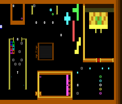 I also threw in an example of looping background music. Note that this isn't "faked" using idle cycles--ZZT Ultra supports the real deal, with genuine "R" repeat codes within the musical tracks.